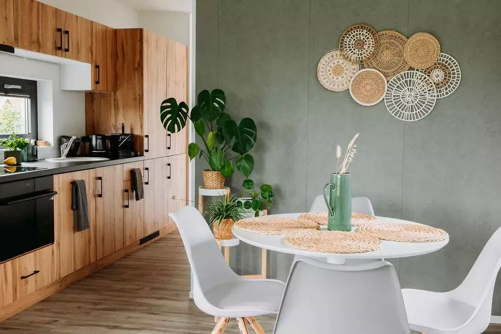 De keuken is voorzien van alle gemakken zoals servies, kookgerei, combimagnetron, koffie- en theefaciliteiten, ruime koel- vriescombinatie, vaatwasser.